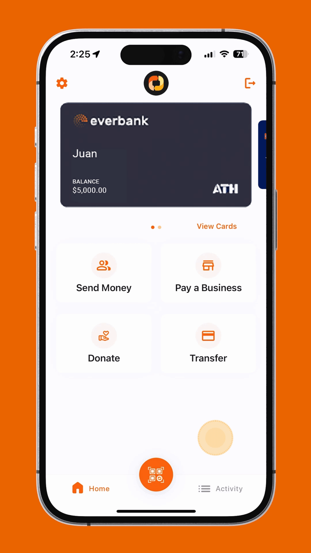 Review all your transfers and payments instantly by tapping "Activity."